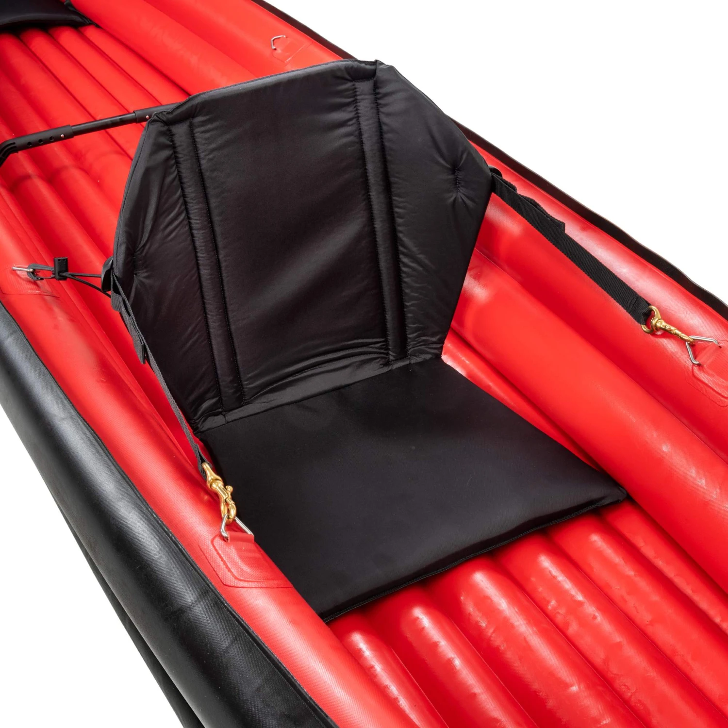Die beiden neuen Kajaksitze mit hohen Rückenlehnen sind leicht gepolstert, neigungsverstellbar und sehr komfortabel. Sie werden mit kleinen Edelstahl-Schäkeln am Boot fixiert. Der Holiday 3 lässt sich auch zu dritt paddeln, indem ein weiterer Sitz in der Mitte installiert wird (nicht im Lieferumfang enthalten).