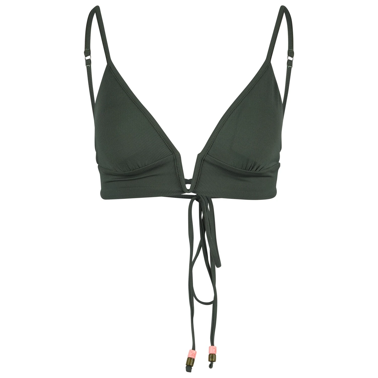 Das Women’s Crocodile Green Parade Bikini-Top von Maaji kann vielseitig kombiniert werden. Das moderne, aber schlichte Design ergänzt jeden Strandlook. Dank der herausnehmbaren Cups ist es flexibel tragbar. Die Schnürung im Rücken ist nicht nur ein optisches Highlight, sondern gleichzeitig kann das Bikini-Top dadurch individuell angepasst werden. Durch die Verarbeitung von recyceltem Polyamid punktet es im Hinblick auf Nachhaltigkeit.
