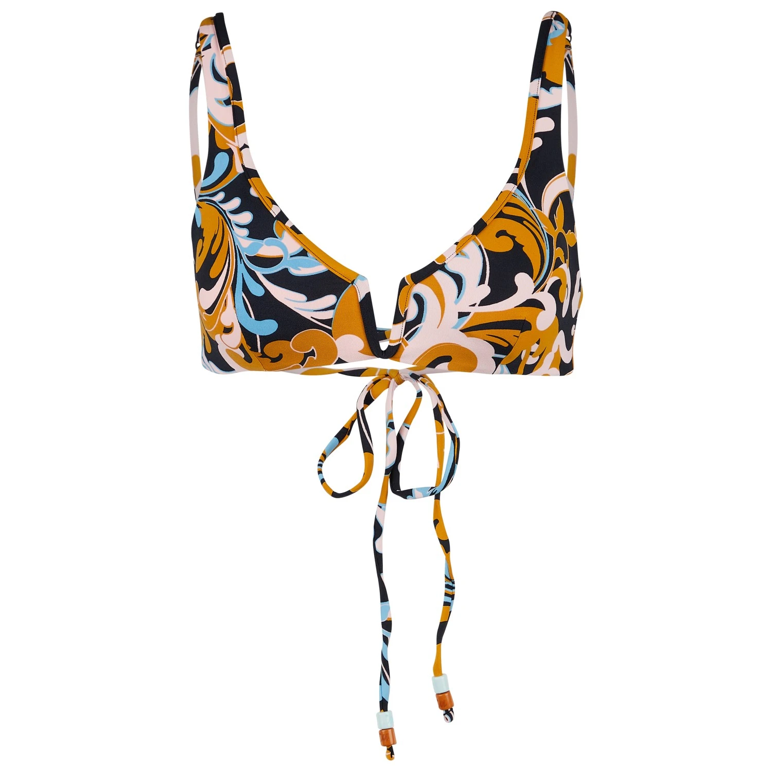 Das Women’s Swizzle Victory von Maaji kann sich dank des fröhlichen Musters sehen lassen. Die Schnürung im Rücken bietet nicht nur individuellen Tragekomfort, sondern setzt gleichzeitig einen optischen Akzent. Das Bikini-Top ist wendbar und kann deshalb vielseitig kombiniert werden. Die Materialzusammensetzung mit Elasthan bietet ausreichend Bewegungsfreiraum. Aktive Tage am Strand machen damit Spaß. Die herausnehmbaren Cups sind praktisch und bieten Flexibilität in der Trageweise.