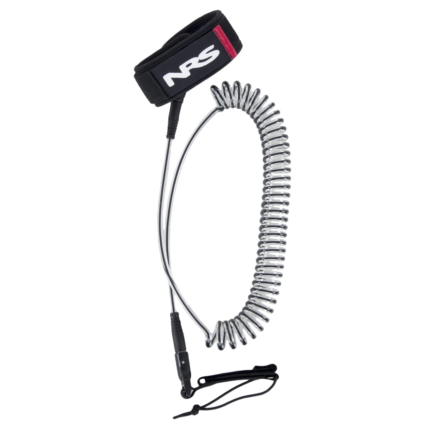 SUP-Leash mit einer Länge von ca. 51 cm, die sich bei Zug auf bis zu 350 cm ausdehnt. Durch die Spiralschnur stört die Leash nicht beim Paddeln und ist auch in flachem Wasser problemlos einsetzbar.