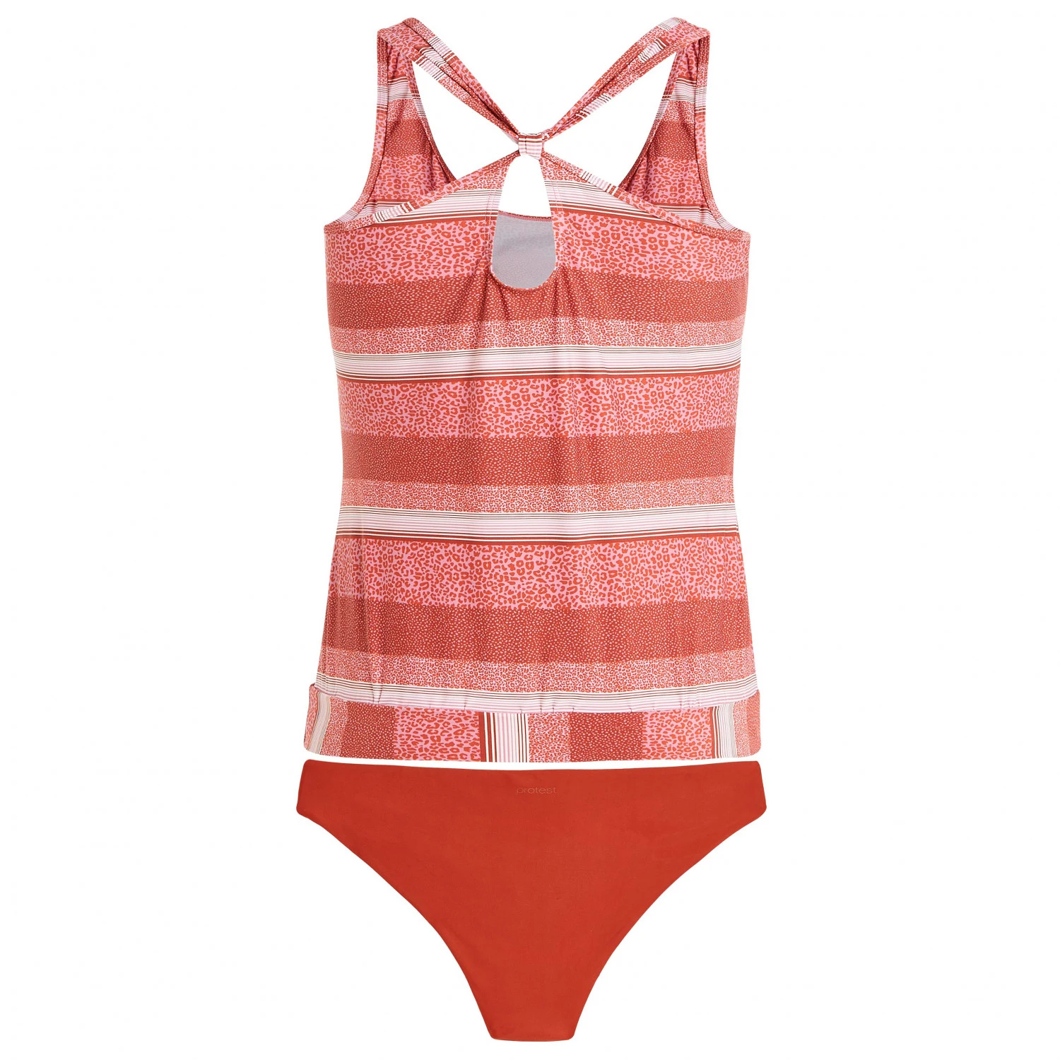 Der Women’s Prtkensi 23 Tankini von Protest kommt in etwas weiterer Passform und gestreifter Optik.