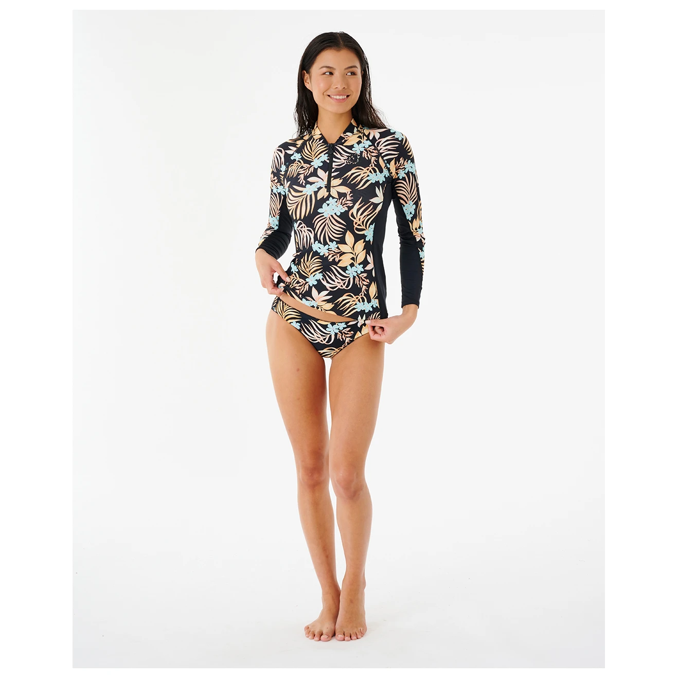 Das Women’s Sun Dance L/S Rashguard von Rip Curl schütz Dich beim Surfen bestmöglich vor der Sonne und sieht dabei auch noch klasse aus! Der hochelastische Materialmix aus Polyester und Elasthan bietet ein Maximum an Bewegungsfreiheit und verleiht dem langärmligen Lycra ein weiches und geschmeidiges Tragegefühl. Die langen Ärmel und der hohe UV-Schutz von 50+ schützen die Haut zuverlässig vor Sonneneinstrahlung, während der tropische Blumenprint für einen tollen Sommerlook sorgt.