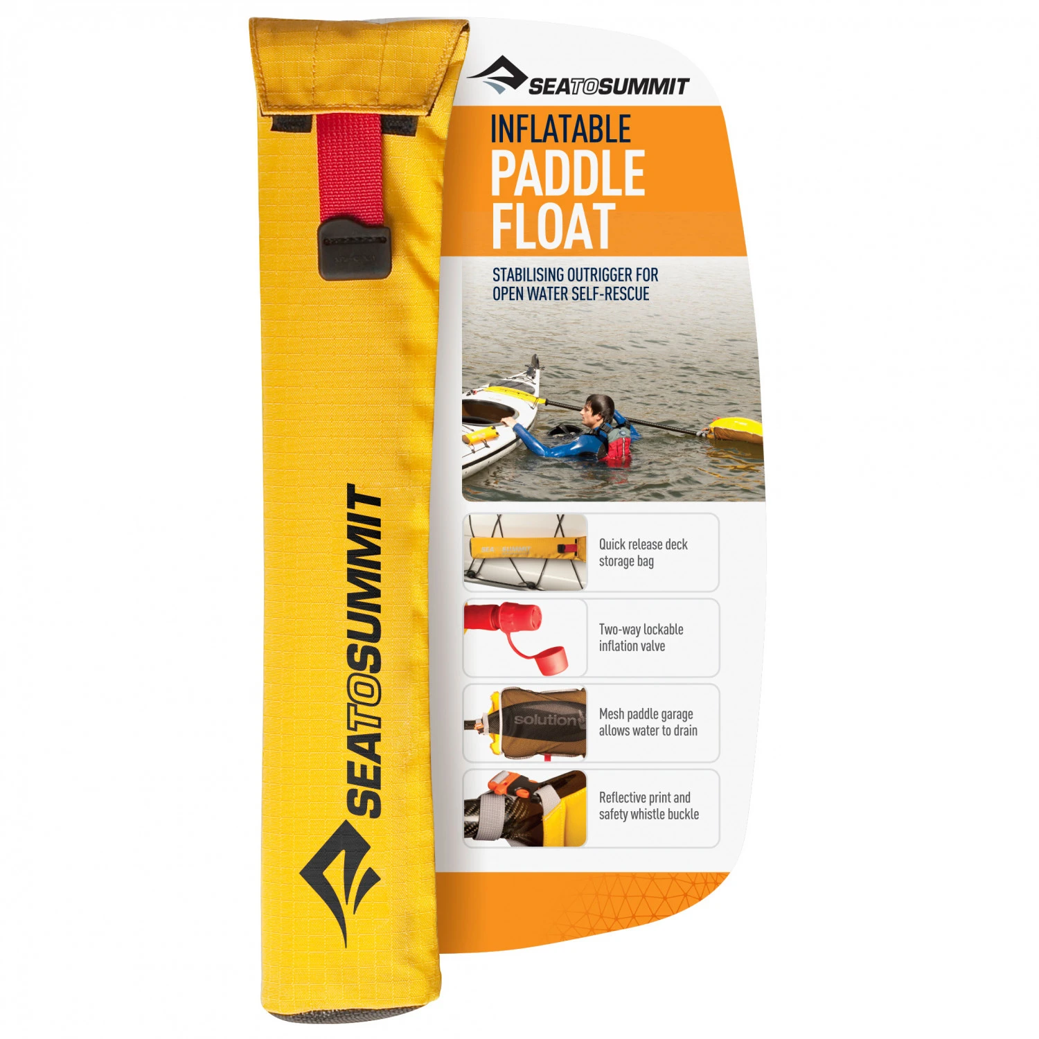 Sicherheit auf dem Wasser bietet der Inflatable Paddle Float von Sea to Summit! Der Einkammer-Paddelschwimmer lässt sich aufblasen und stabilisiert das Kajak im Falle einer Kenterung. Auch der Wiedereinstieg wird damit erleichtert. Der Zugriff ist einfach, Du musst nur an der roten Lasche ziehen.