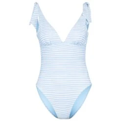 Beim Women’s Summercrush V Neck One Piece Badeanzug des australischen Labels Seafolly trifft minimalistischer Streifen-Look auf verspielte und feminine Elemente. Schleifen an der Schulterpartie sind kleine Hingucker. V-Ausschnitt und ein tiefer Rückenausschnitt setzen Dich gekonnt in Szene. Das elastische Material mit recycelten Polyamid und die hohe Beinlinie sorgen für ausreichend Bewegungsfreiheit. Herausnehmbare Cups geben Form und Halt und können so auch noch schneller trocknen.