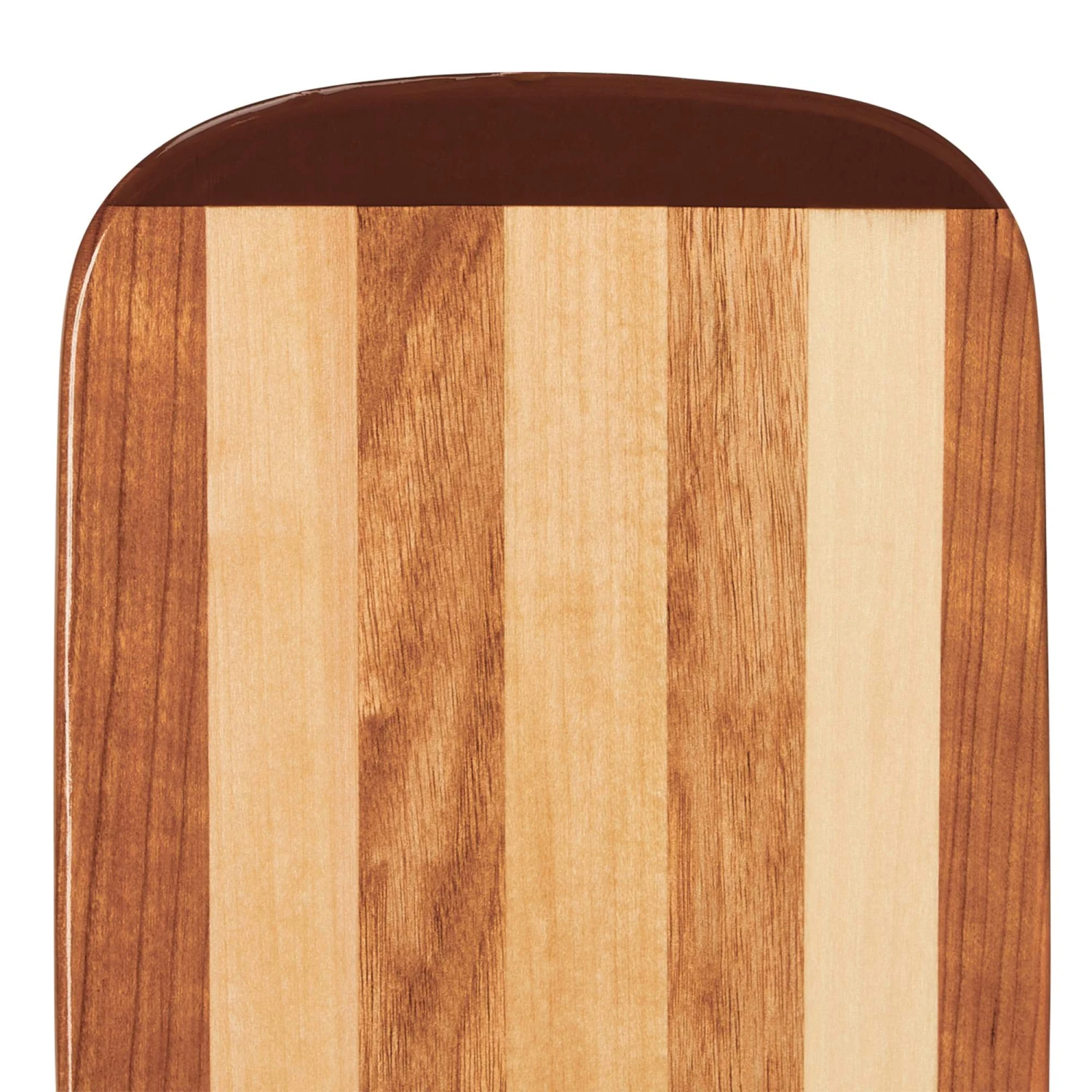 Das mehrfach laminiertes Holzpaddel besteht aus Linde und Kirsche sowie Walnuss, mit einer PU-Schutzkante und ovalem Schaft. Der abgerundete Griff liegt sehr angenehm in der Hand.